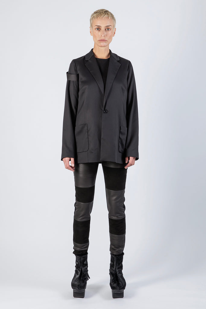 - レッグの前面に装飾的なレザーパネル